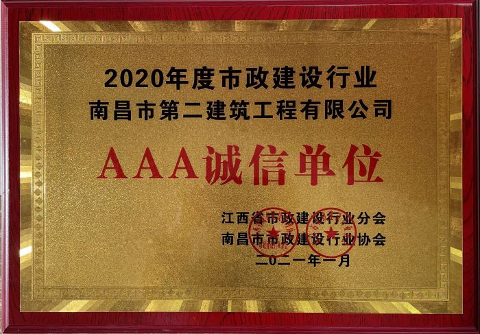 日前,江西省市政建設行業(yè)協(xié)會(huì )和南昌市市政行業(yè)協(xié)會(huì )召開(kāi)兩年一次的先進(jìn)表彰大會(huì ),我公司優(yōu)異成績(jì)連獲2020年度省、市市政建設行業(yè)“先進(jìn)單位”和“AAA誠信單位”稱(chēng)號。